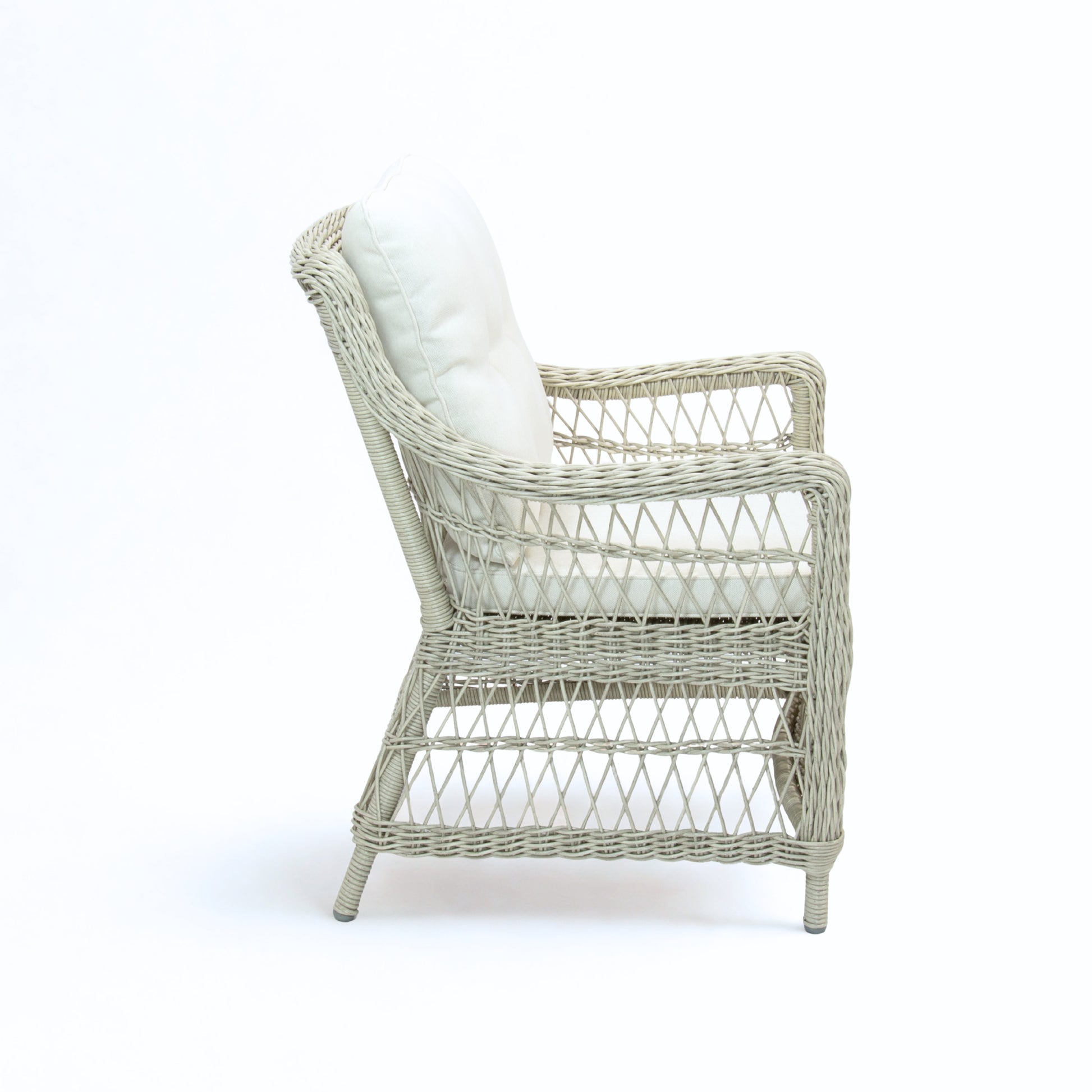 Crafted from powder coated light weight yet sturdy aluminium frame and handwoven with UV treated poly rattan wicker, the AMOIR outdoor dining chair is weather resistant and ideal for any outdoor setting. Topped with plush cushions for superior comfort, sit back relax, this outdoor dining chair will not disappoint.