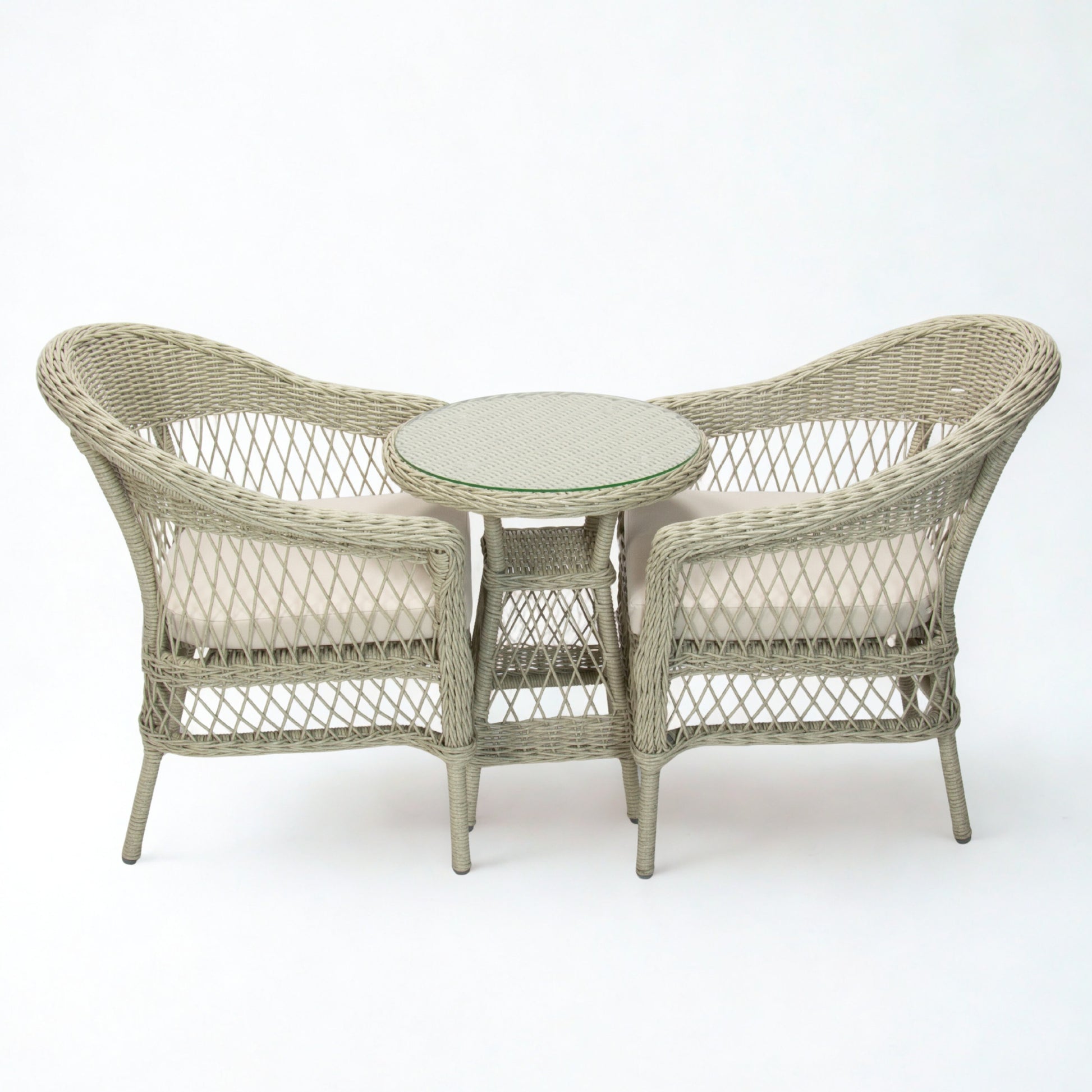 ARBUSTO | 2 Seater Poly Rattan Wicker Outdoor Balcony Set | Brushed White